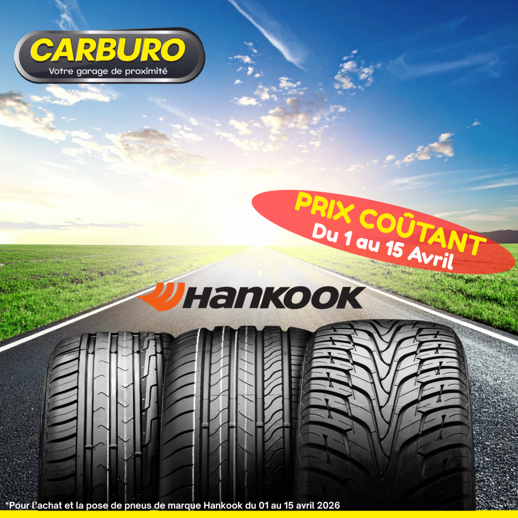Votre garage CARBURO à Brignoles vous propose une promotion éclair exceptionnelle sur les pneus Hankook.